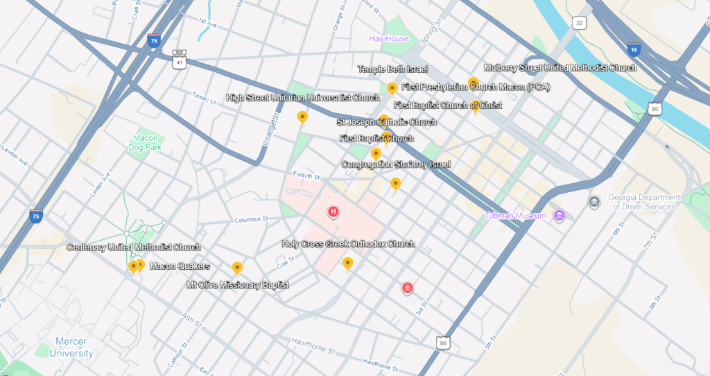 This website is a project of Dr. Andrew Gardner’s Integrated Studies 201 Course “Building Community: Religion and Volunteerism” at Mercer University. Click here to see a list of students’ recent research on local religious communities in Macon, GA.